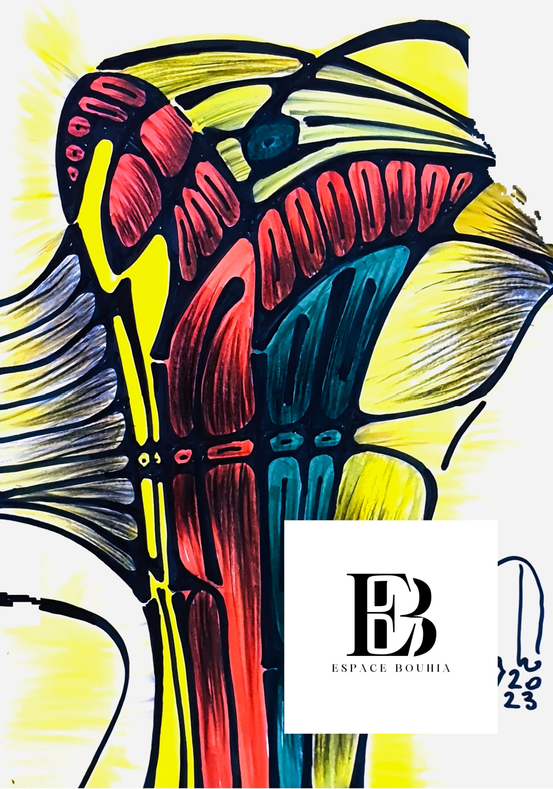 Acheter et Télécharger sur Paypal Acheter et Télécharger sur Fedapay Cette œuvre de l’artiste se distingue par son dynamisme et son jeu de contrastes. La structure, semblable à une ossature organique ou mécanique, donne une impression de mouvement et de transformation. Les couleurs intenses rouge, jaune et bleu foncé interagissent harmonieusement, évoquant une tension entre…